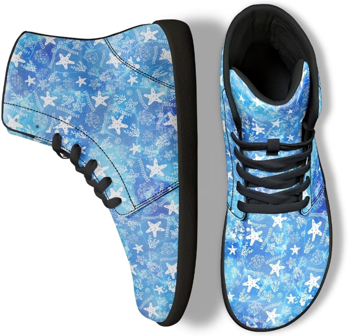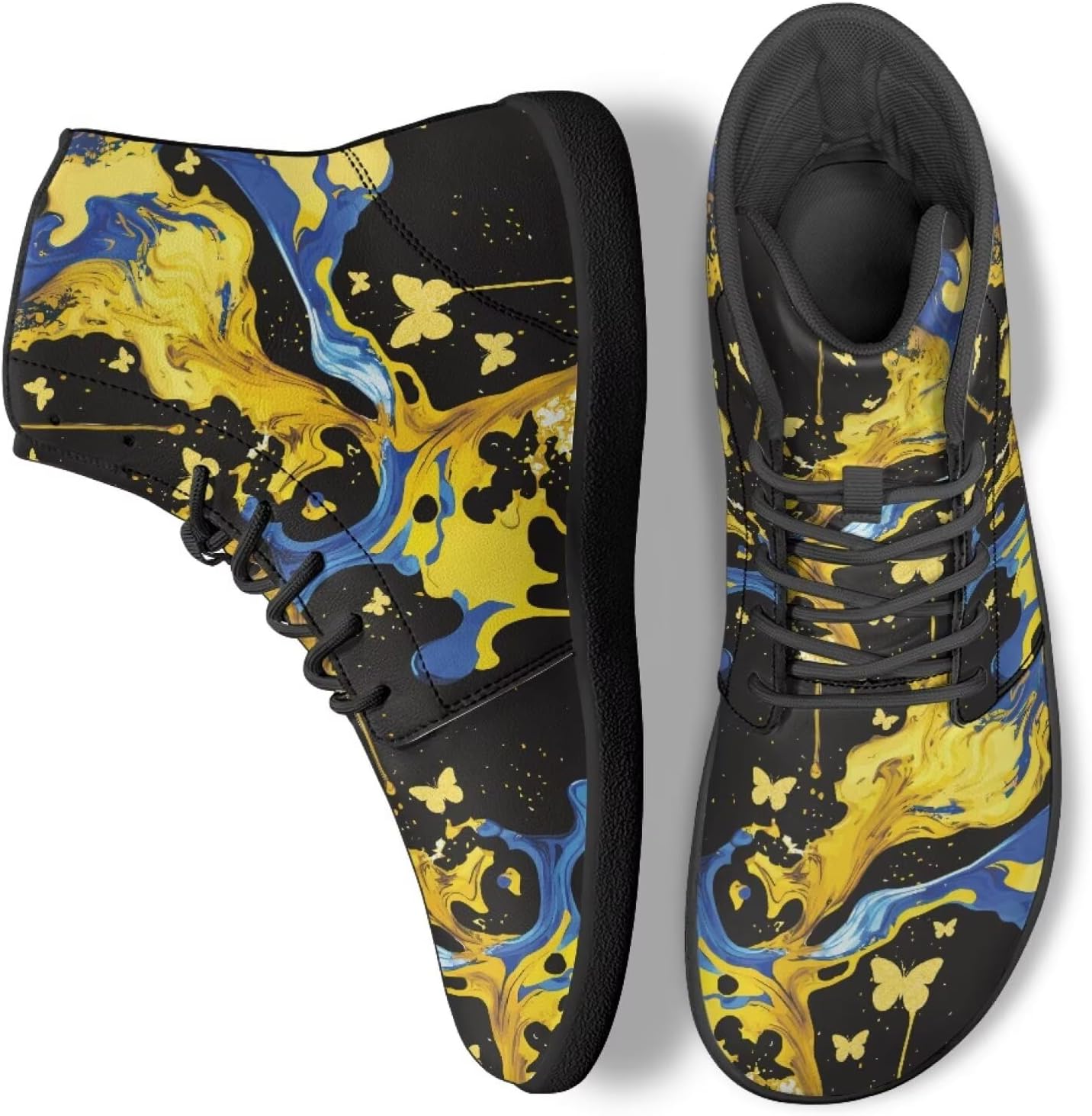 Fashion High Top Barefoot Shoes Suitable for water sports, surfing, creek descents, kayaking, camping, zip lining, swimming, wading, jumping, backwater, paddle rafting, snorkeling, rainy days, beach visits, shopping, aerobics, jogging, walking, indoors, at home, in the garden, in the office, at the gym, exercising, in the garden, in the office, at the gym, in sports, athletics, yoga, workouts, fitness training, outdoor sports, running, biking, free cycling, golf, urban lifestyle, walks in towns and parks, adventure trips, fishing trips, etc. Shoes Size: US: Men: 6, 6.5, 7.5, 8.5, 9, 10, 11, 11.5, 12.5, 13.5, 14 Women: 7.5, 8, 9, 10, 10.5, 11.5, 12.5, 13, 14, 15, 15.5 UK: Unisex: 5, 6, 7, 8, 9, 10, 11, 12, 13, 14, 15 EUR: Unisex: 38, 39, 40, 41, 42, 43, 44, 45, 46, 47, 48