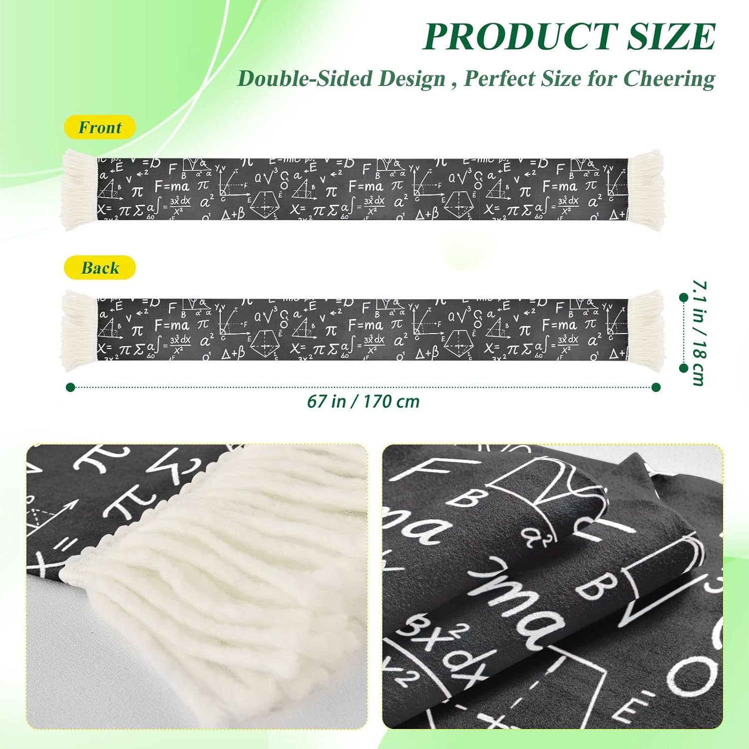 Whether you are cheering from the stands or watching from home, this sports fan scarf is your go-to accessory for game day. Crafted from 100% polyester brushed fabric, it feels soft against your skin while wicking away sweat so you stay focused on the action.The scarf measures a full 70 x 7 inches with a generous 60 x 7 inch print area, giving teams, clubs, and fans plenty of room to display slogans, logos, or rally messages. Fringed ends on both sides add a sporty, eye-catching finish.Bright, fade-resistant dyes keep the colors vivid through repeated washes. Simply machine wash on a gentle cycle in cool water under 40C, and it comes out looking just as bold as the day you got it.This soccer scarf also works as a sweat towel wrap during intense outdoor events. It absorbs moisture quickly and dries fast, so you can cheer longer without discomfort.Looking for a thoughtful gift for a sports fan? This scarf makes a present for birthdays, holidays, or any celebration. It is lightweight, easy to carry, and fits fans of all ages.