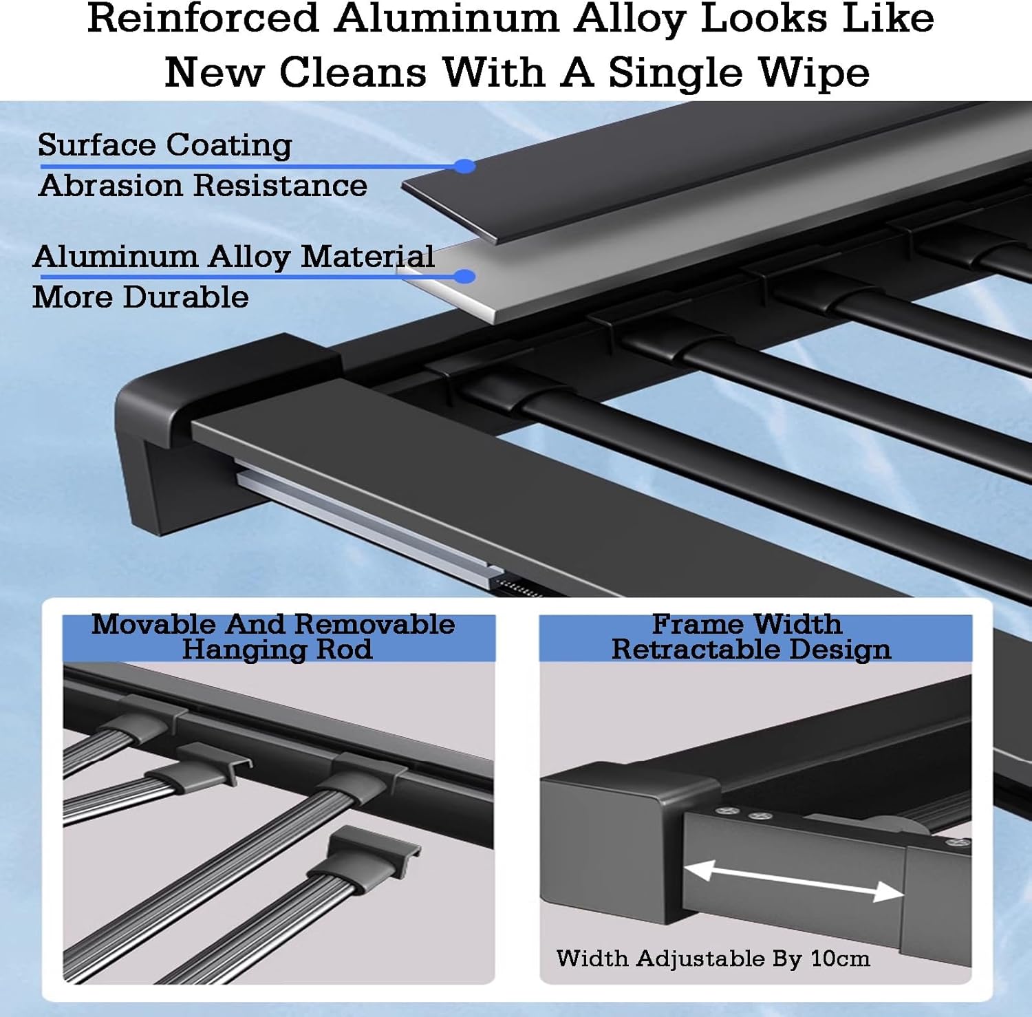 Our trouser racks are constructed with thickened aluminum alloy and ABS materials, providing strong load-bearing capacity and long-term durability. They feature an easy pull-out mechanism with a silent effect, thickened side plates for reliable quality, and enhanced stability to prevent wobbling, ensuring long-term use and saving valuable closet space. When not in use, the rack can be with a telescopic design that is very practical and barely noticeable in your space. This trouser rack maximizes narrow spaces, making it suitable for storage areas, narrow wardrobes, and installation above washer cabinets to create a practical drying area. Assembly is simple: choose the appropriate height, determine the position, install screws to fix the guide rail, and snap the bracket in. It is ideal for compact cabinets, homes, apartments, or any laundry room with limited space. Specifications: Product Name: Pull-Out Rack Above Washing Machine, Organizer for Wardrobe, Space Saving Drying Rack, Pull Out Trousers Rack Drawer, Standing Dry Racks, Invisible Retractable Sliding Laundry Rack, Wall-Mounted Dry Racks Made Of: Aluminum alloy + ABS Product Size (Depth x Width): 56x45-60/60-85/85-120 cm Product Height: 5 cm Recommended Installation Height: ≥5.5 cm Installation Depth: ≥56 cm Number of Poles: 7/11/15 Package Includes: Pull-out clothes drying rack x 1 Note: The product does not include the panel, which needs to be configured by the user. Due to variations in computer resolution and manual measurement, there may be slight errors in product color and dimensions; please refer to the actual product for accuracy.